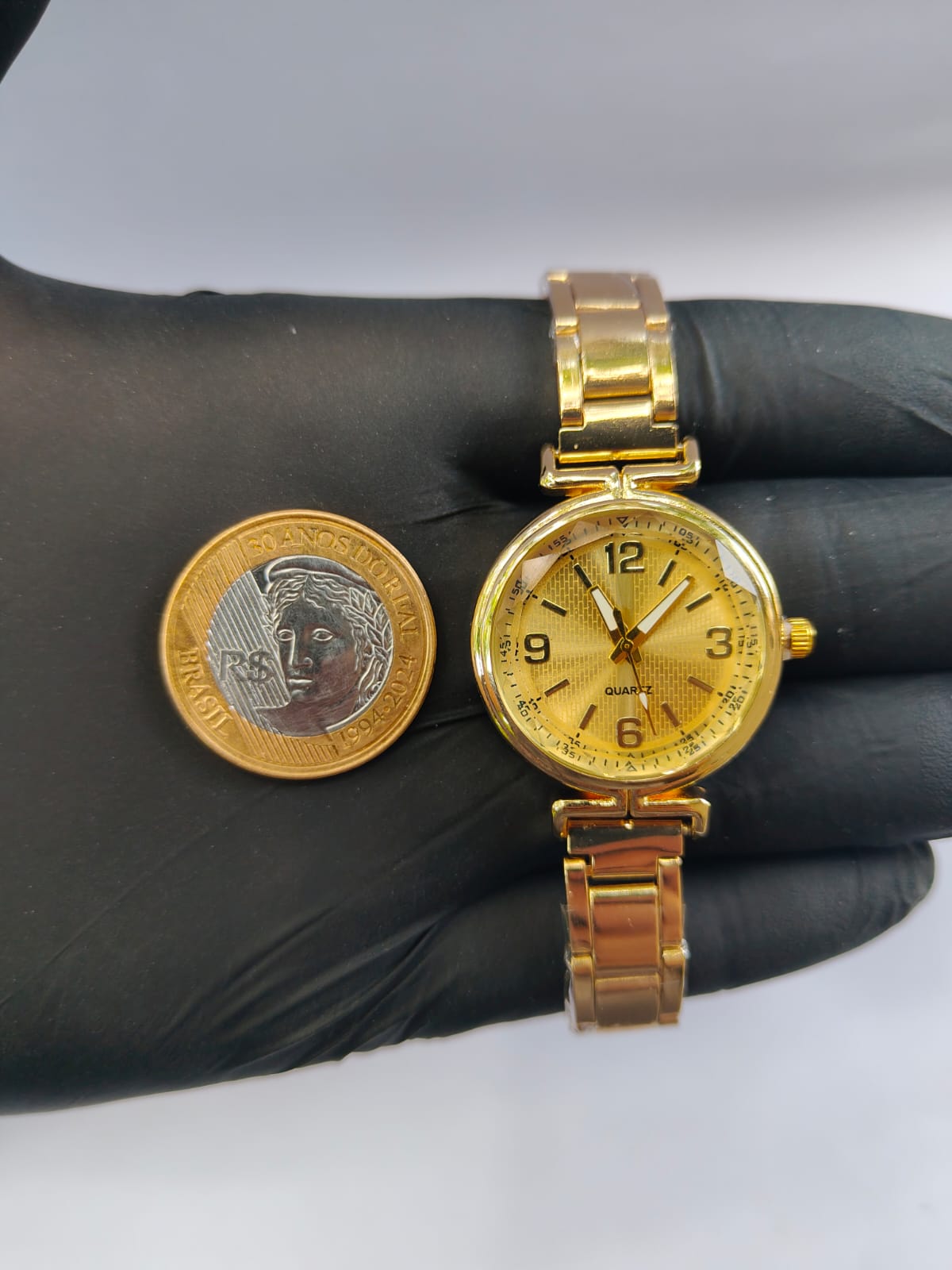 Adicione um toque de glamour atemporal ao seu visual com este deslumbrante relógio. Não possui resistência à água.