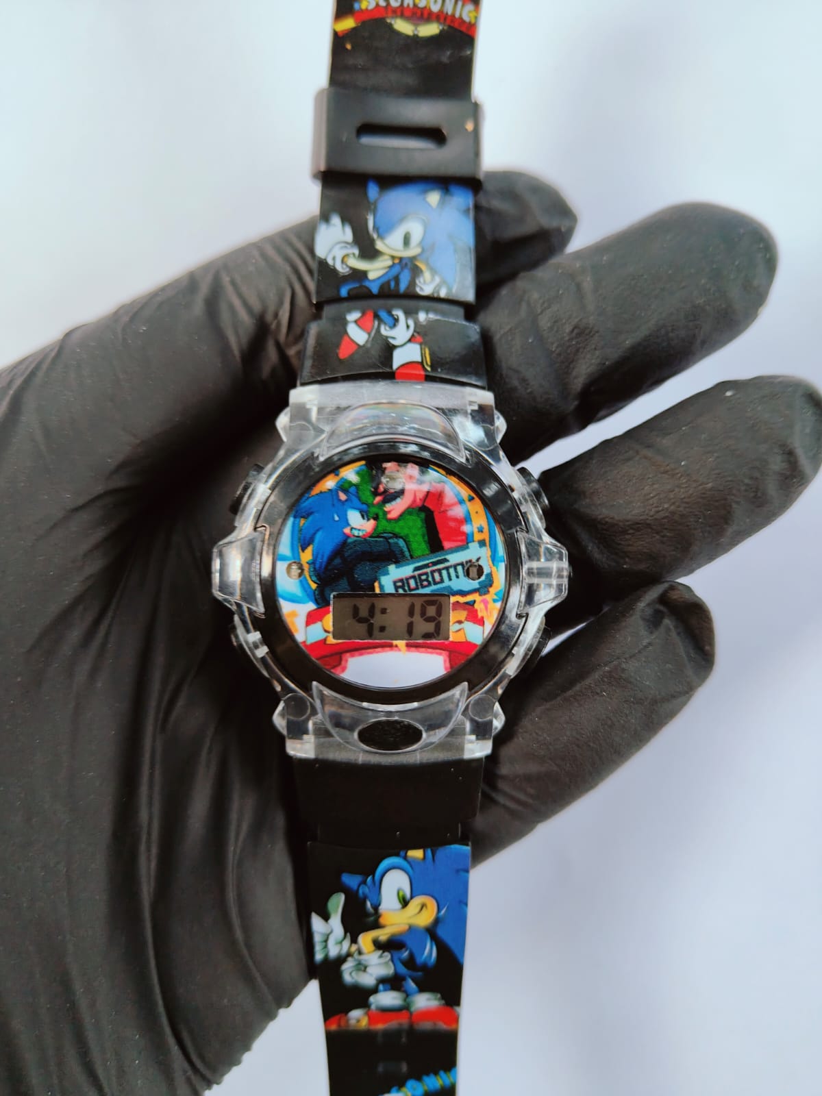 Este relógio digital infantil de carros desenho da Disney pisca luzes coloridas de LED e toca música. É um acessório divertido com design fofo, ideal para presentear, que combina a funcionalidade de um relógio com elementos interativos de luz e som para encantar as crianças. Não possui resistência à água.