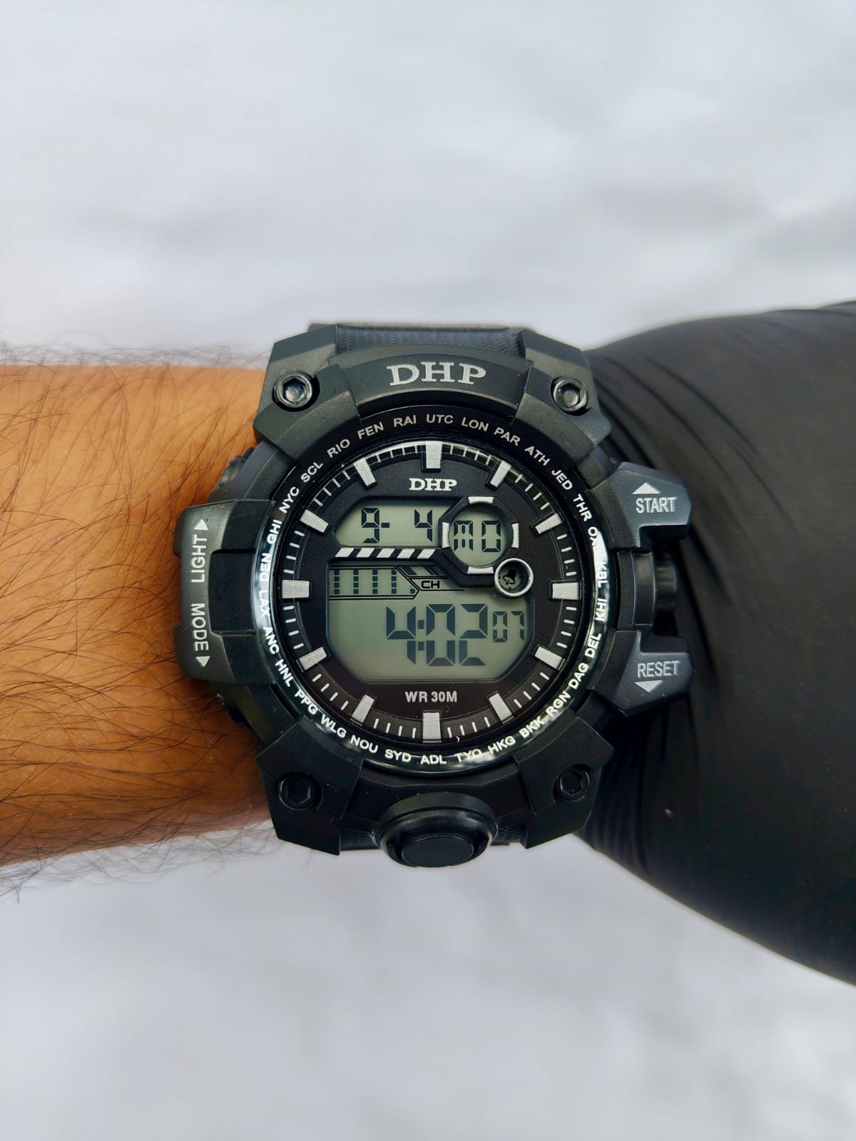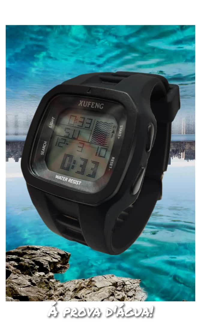 Funções: Inclui display digital completo com data, hora, alarme e cronômetro.
