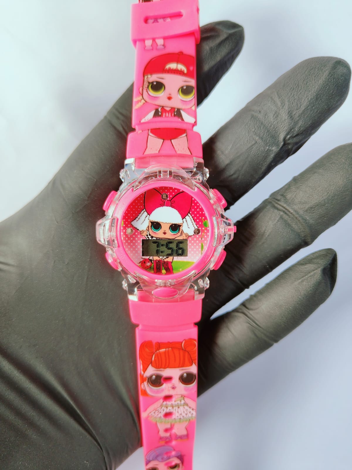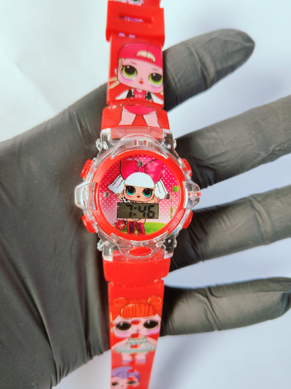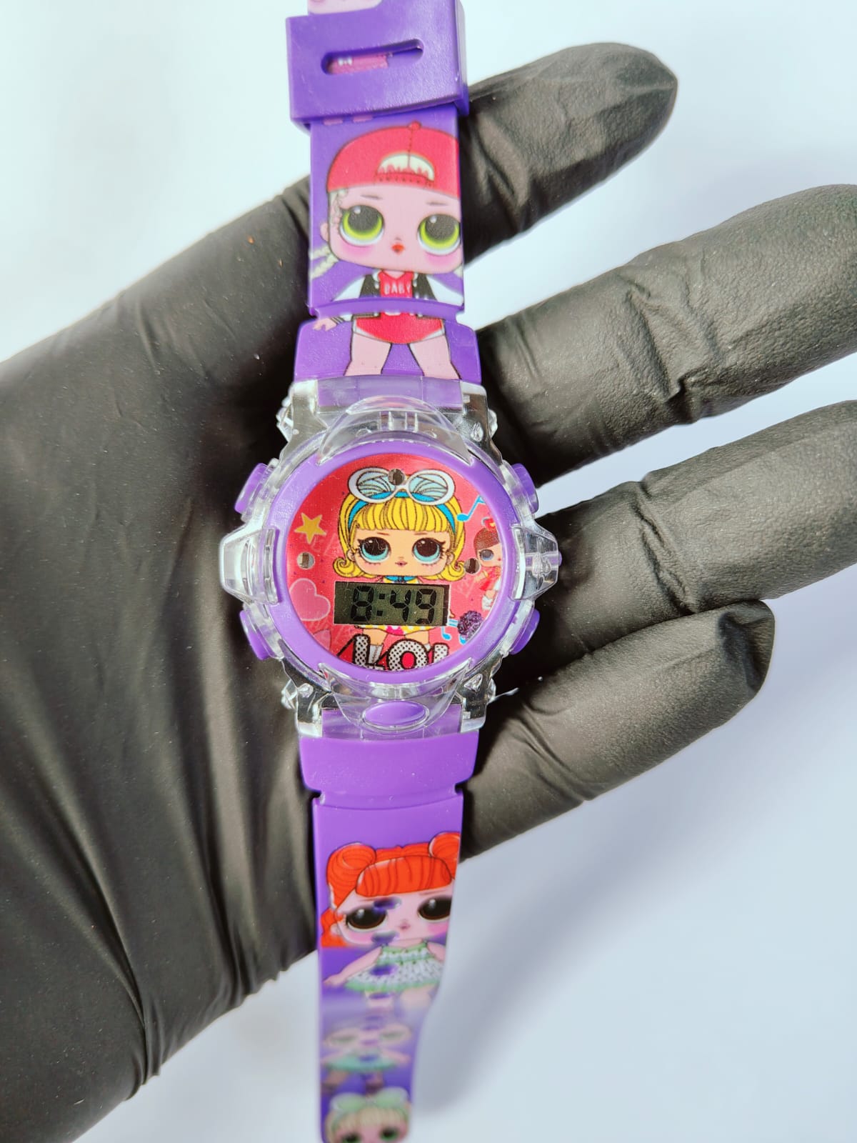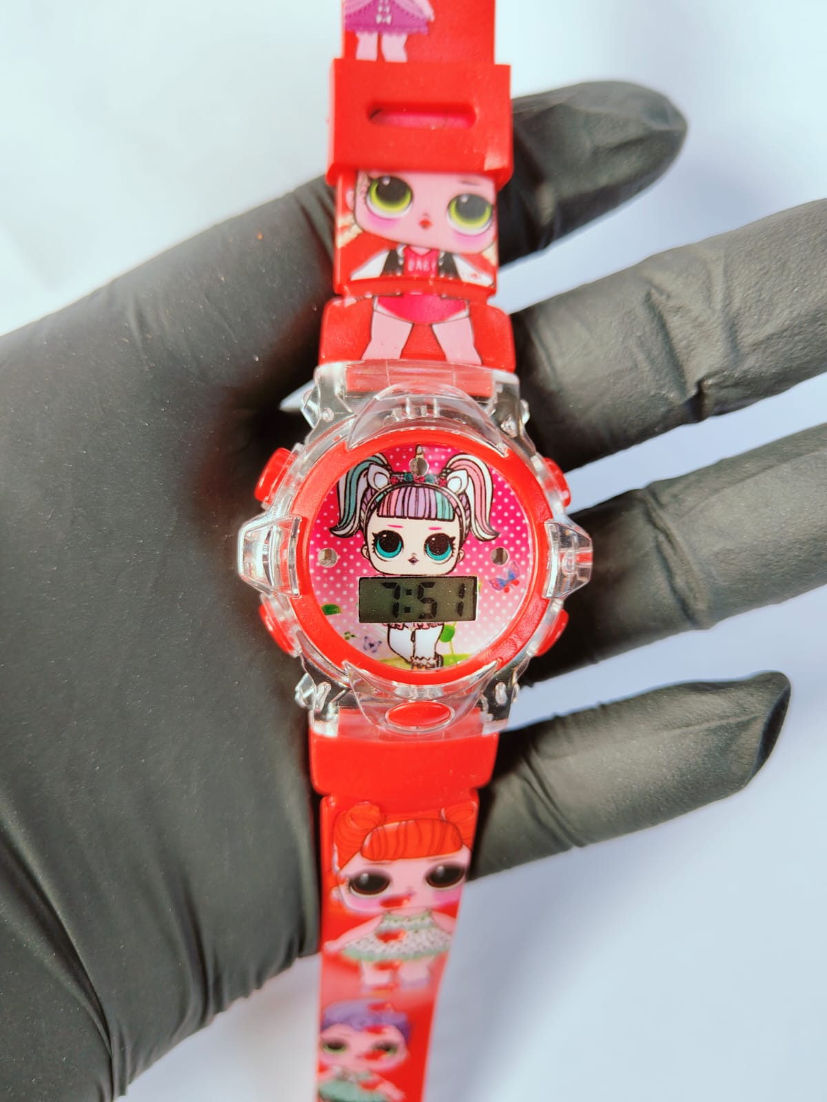 Este relógio digital infantil da L.O.L. pisca luzes coloridas de LED e toca música. É um acessório divertido com design fofo, ideal para presentear, que combina a funcionalidade de um relógio com elementos interativos de luz e som para encantar as crianças. Não possui resistência à água.