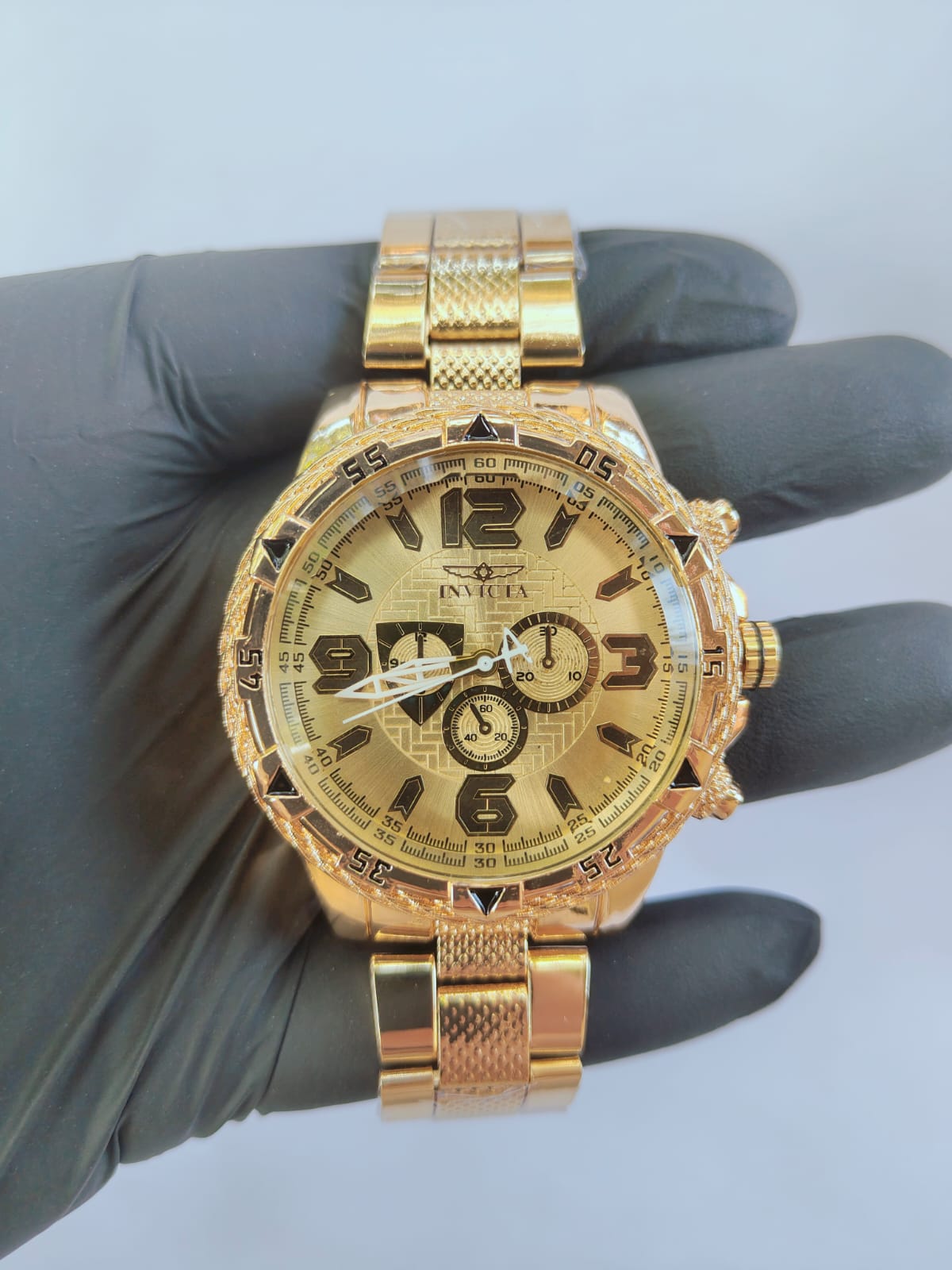 Um relógio que se destaca imediatamente no pulso, ideal para quem gosta de fazer uma declaração de estilo. Não possui resistência à água. Cronógrafo ilustrativo.