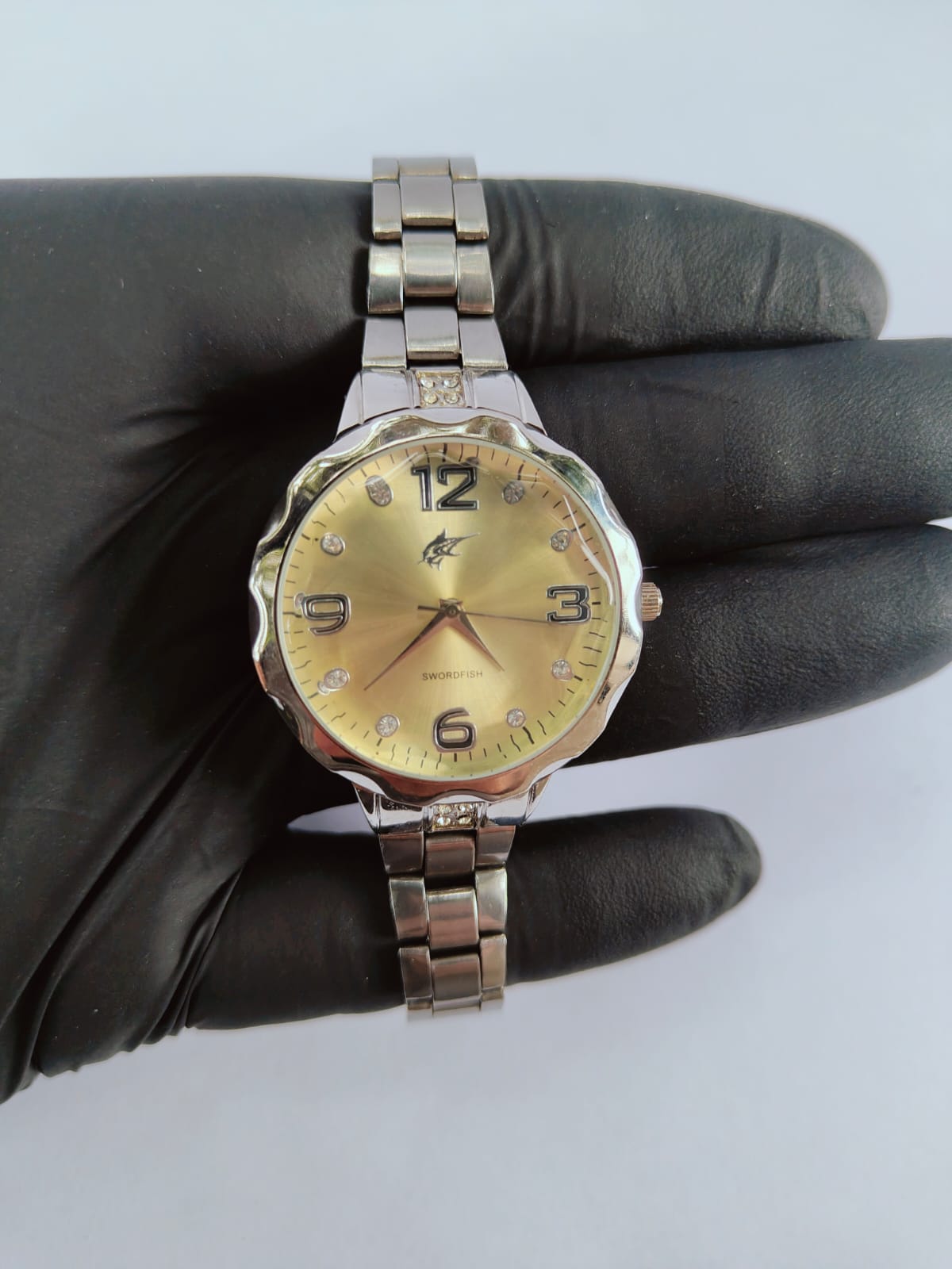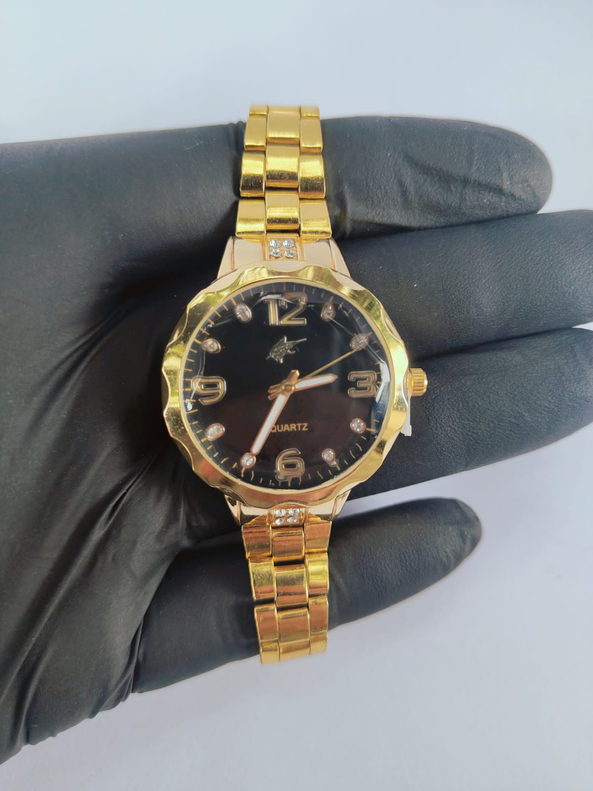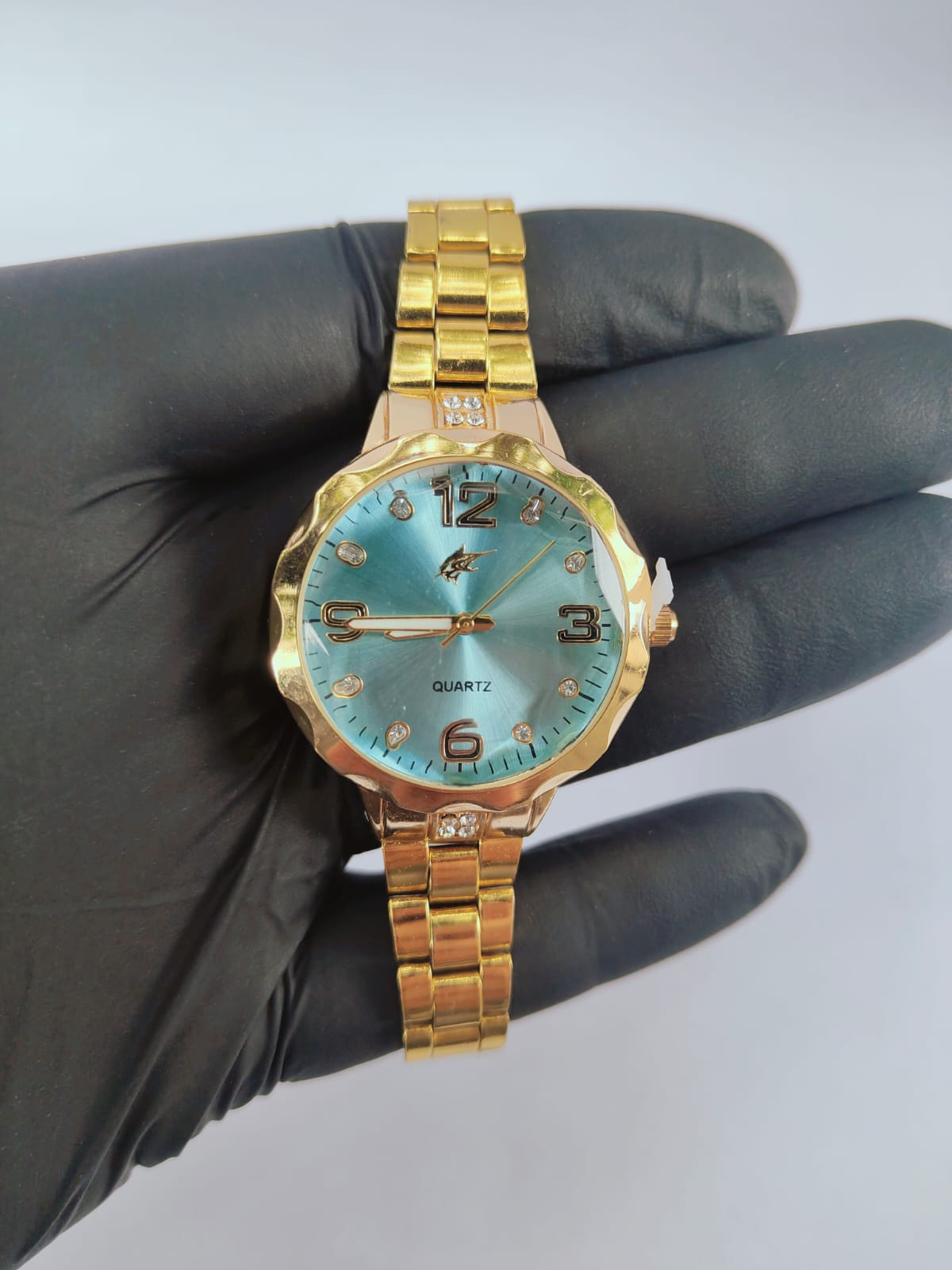 Refine seu estilo com este modelo elegante que combina delicadeza e presença. O mostrador dourado com marcadores em strass traz sofisticação, enquanto a pulseira metálica garante um visual moderno e refinado. prova dágua 50m, adequado para banho frio, serviços de casa, lavar carro, e chuva.