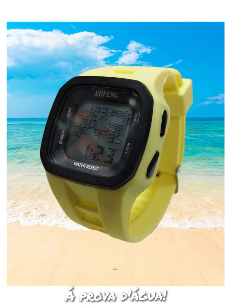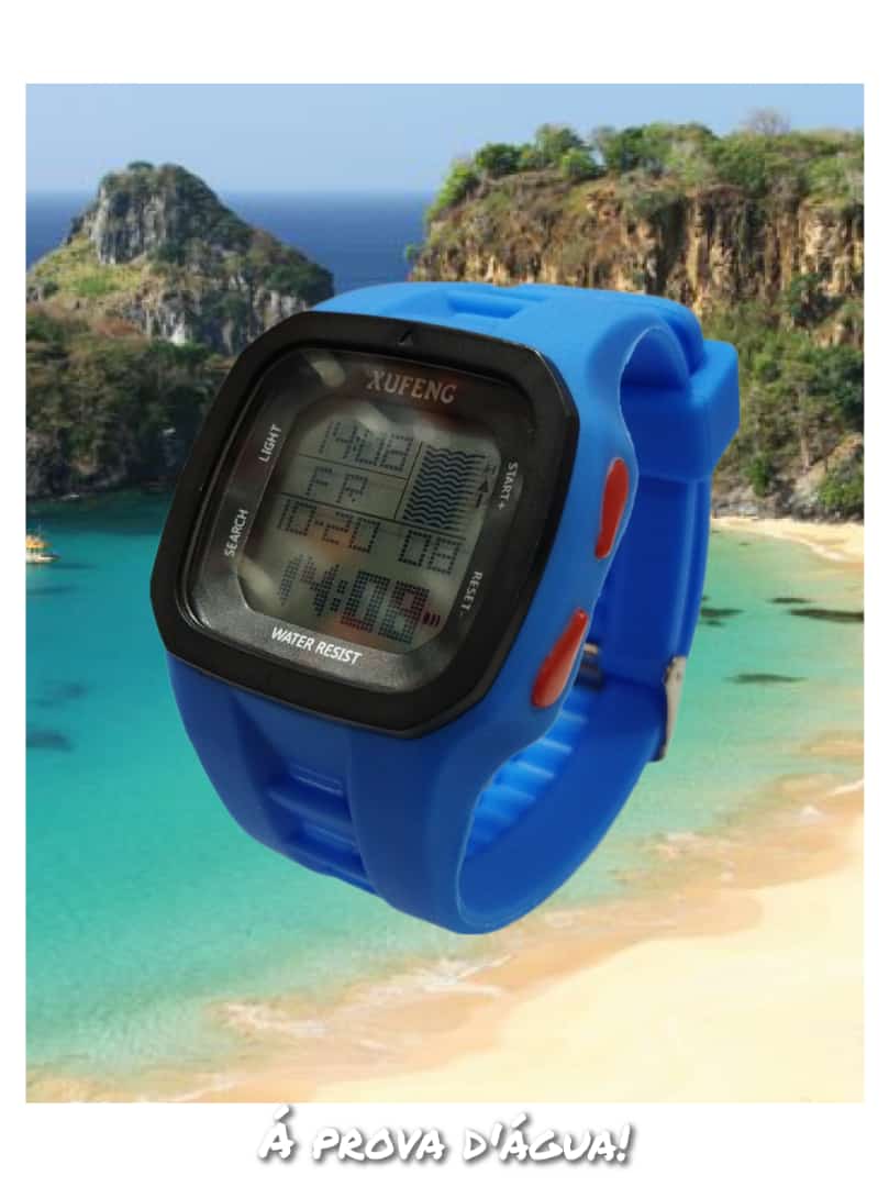 Resistência à água: prova d’água, 100 metros, adequado para natação ou atividades de surf.